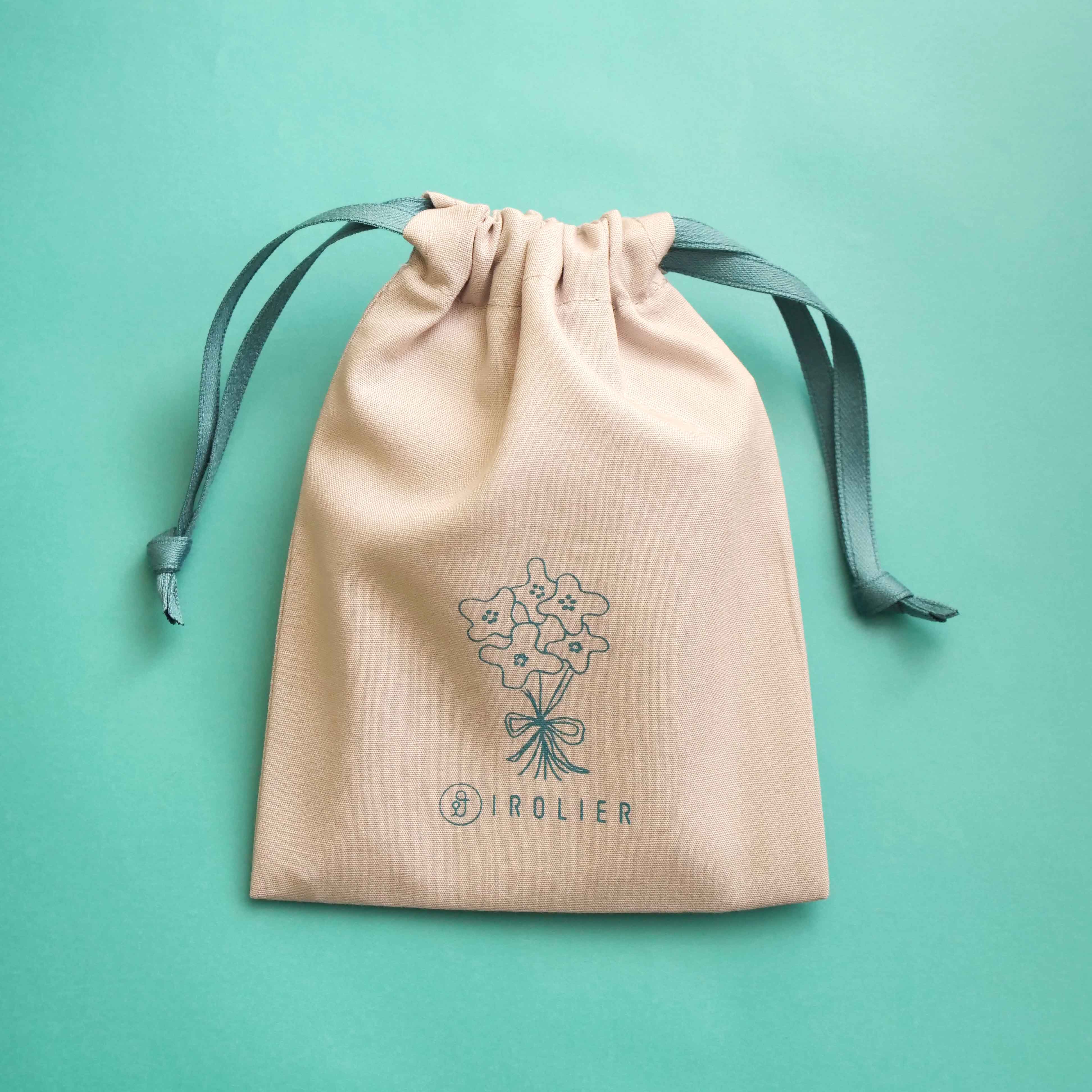 4月の巾着が終わってしまったので、4/19発送分より5月の花束の巾着にてお届けいたします。デザイナーの娘が描いたイラストを使用しています。