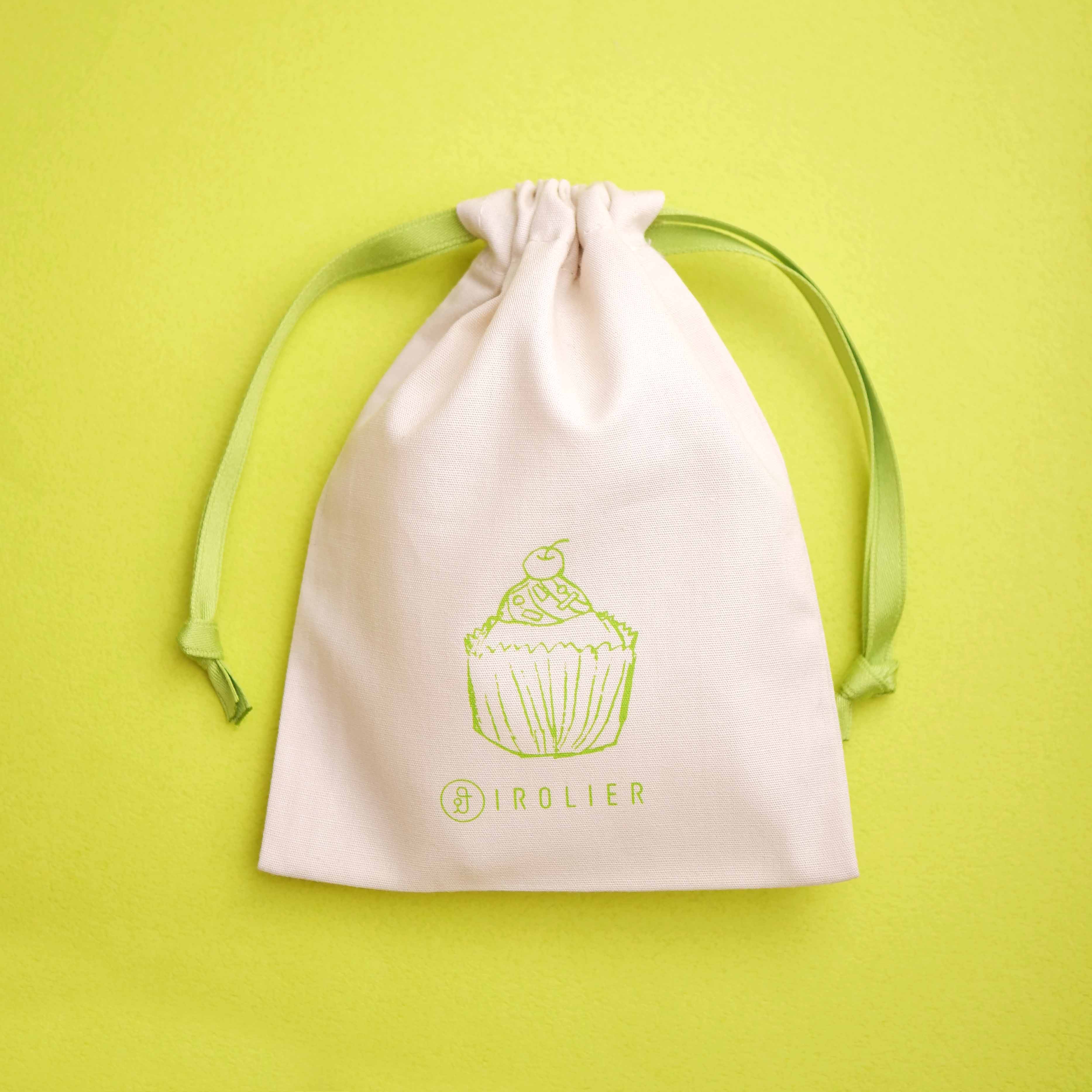1月の巾着が終了したので、1/21ご注文分からは2月のカップケーキの巾着にてお届けいたします。デザイナーの娘が描いたイラストです。